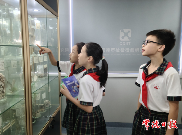 “哪个是甲类非处方药,哪个是乙类非处方药?”“药品阴凉处保存是多少度?”活动在激烈的药品安全知识竞答中拉开帷幕,学生们纷纷举高小手,争先恐后地抢答。药品安全知识竞答结束后,在实验室技术人员的带领下,大家一起参观了中药材标本室、药品检验检测实验室,现场观看和体验显微镜操作、趣味化学小实验。在实验室技术人员的讲解过程中,有的孩子踮起脚尖上前观察检验仪器,听得充满好奇跃跃欲试,为此市药检所精心准备了“pH测定”“显微鉴别”“辨识微生物形态”几个有趣的互动性科学小实验,通过零距离接触实验过程和各类检验检测剂仪器使用方法,让孩子们亲身体验了科技的奇妙之处,同时技术人员对孩子们提出的问题一一耐心解答,更增长了孩子们的科学常识。